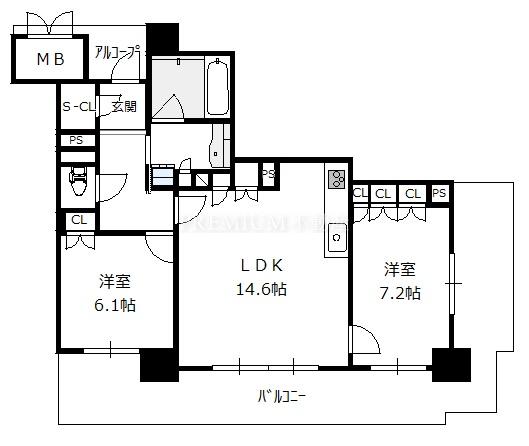 間取り 2LDK(洋7.2 洋6.1 LDK14.6)