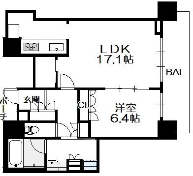 間取り 1SLDK(洋6.4 LDK17.1 )