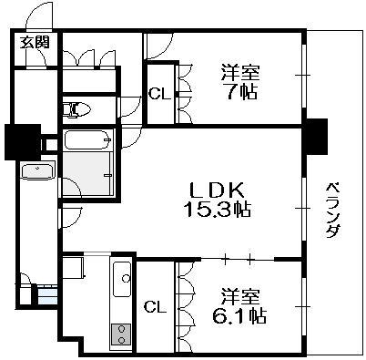 間取り 2LDK(洋7.0 洋6.1 LDK15.3)