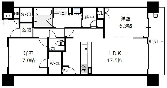 間取り 2LDK(洋7.0 洋6.3 LDK17.5)