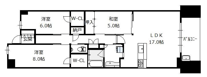 間取り 3SLDK(洋8 洋6 和5 S0.6 LDK17)