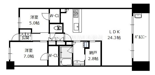 間取り 2SLDK(洋7.0 洋5.0 S2.8 LDK24.3)