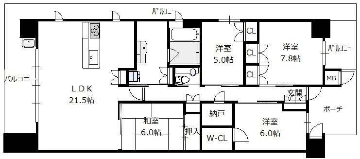 間取り 4LDK(洋7.8 洋6 洋5.0 和6.0 LDK21.5)