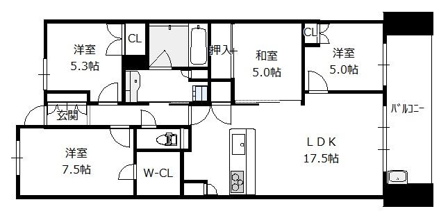 間取り 4LDK(洋7.5 洋5.3 洋5.0 和5.0 LDK17.5)