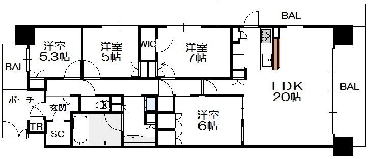 間取り 4LDK(洋7. 洋6.0 洋5.3 洋5 LDK20.0)