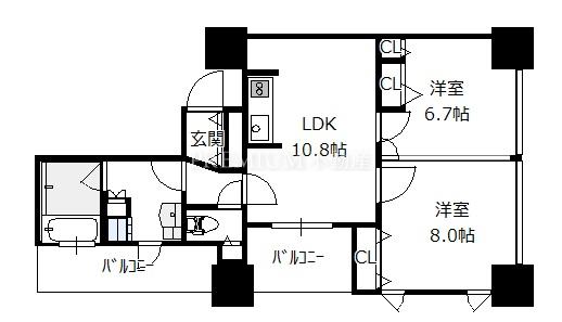 間取り 2LDK(洋8.0 洋6.7 LDK10.8)