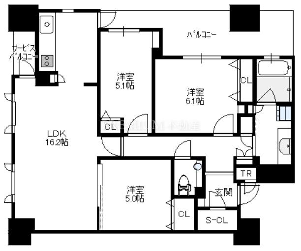 間取り 3LDK(洋6.1 洋5.1 洋5.0 LDK16.2)