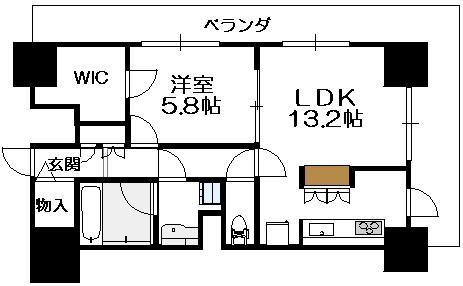 間取り 1LDK(洋5.8 LDK13.2 )