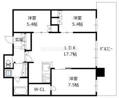 間取り 2LDK(洋7.7 和5.0 LDK19.6 )