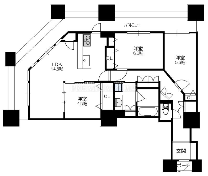 間取り 3LDK(洋6.0 洋5.6 洋4.5 LDK14.6)