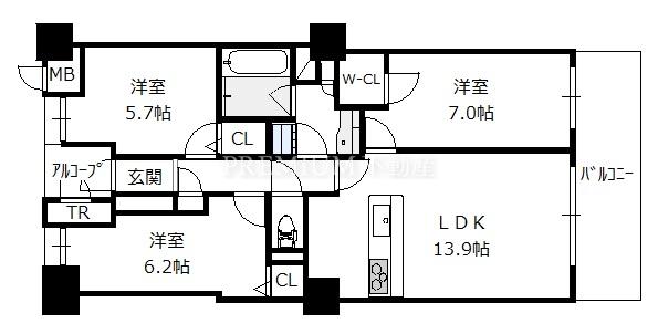 間取り 3LDK(洋7.0 洋6.2 洋5.7 LDK13.9)
