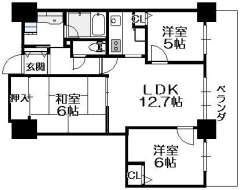 間取り 3LDK(洋6.0 洋5.0 和6.0 LDK12.7)