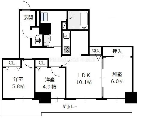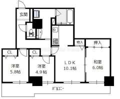 間取り 3LDK(洋5.8 洋4.9 和6.0 LDK10.1)