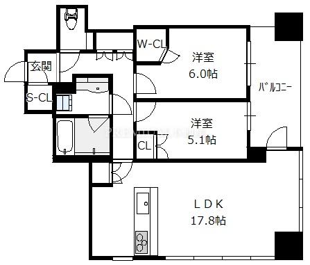 間取り 2LDK(洋6.0 洋5.1 LDK17.8)