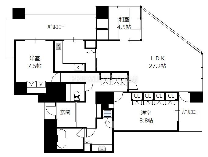 間取り 3LDK(洋8.8 洋7.5 和4.5 LDK27.2 )