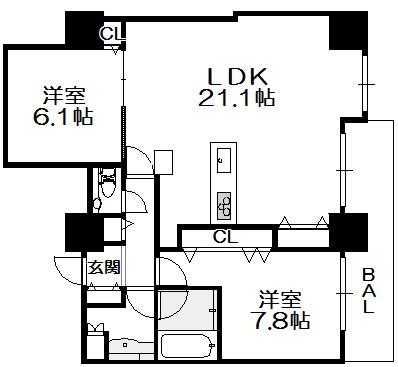 設備 独立型キッチン/ガスコンロ/バス・トイレ別/追い炊き機能/浴室乾燥機/室内洗濯機/クローゼット/エアコン/シューズ・ボックス/2面以上バルコニー/角部屋