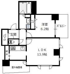 間取り 1SLDK(洋6.2 LDK13.9 S)