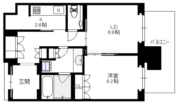 間取り 1LDK(洋6.2 LD6.6 K3.6)