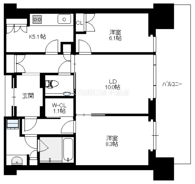 間取り 2LDK(洋8.3 洋6.1 LD10.0 K5.1)