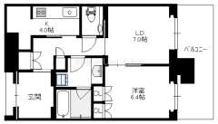 間取り 1LDK(洋6.4 LD7.0 K4.0)