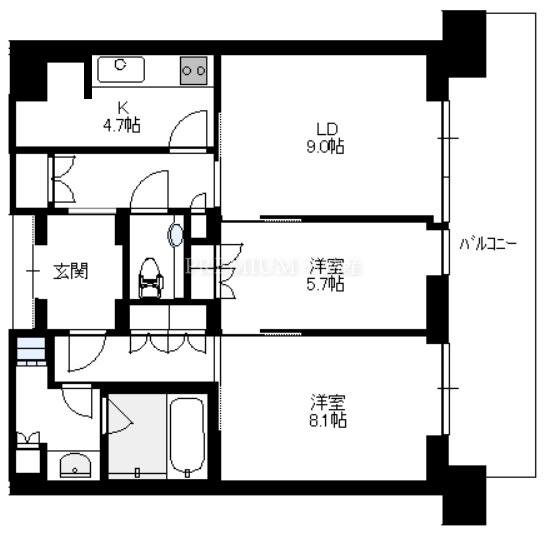 間取り 2LDK(洋8.1 洋5.7 LD9.0 K4.7)