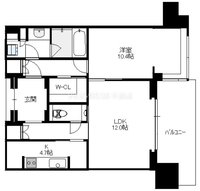 間取り 1LDK(洋10.4 LD12.0 K4.7)