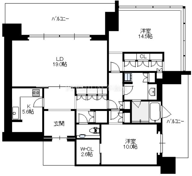 間取り 2LDK(洋11.1 洋8.7 LD23.4 K5.2)