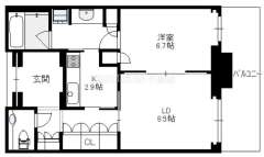 間取り 1LDK(洋6.7 LD8.5 K2.9)