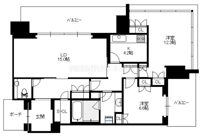 間取り 2LDK(洋12.3 洋6.6 LD15.0 K4.2)