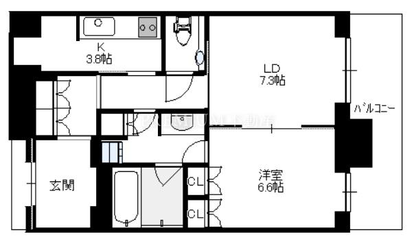間取り 1LDK(洋6.6 LD7.3 K3.8)