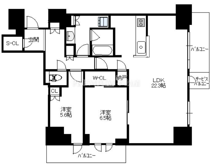 間取り 2LDK(洋6.5 洋5.6 LDK22.3)