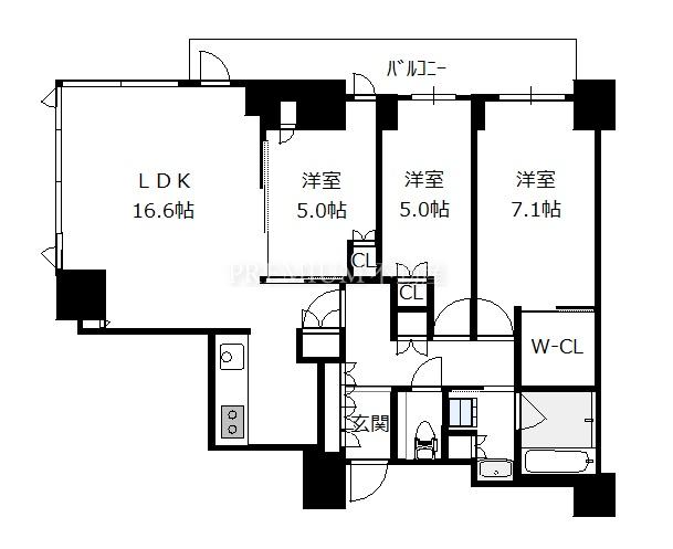 間取り 3LDK(洋7.1 洋5.0 洋5.0 LDK16.6)