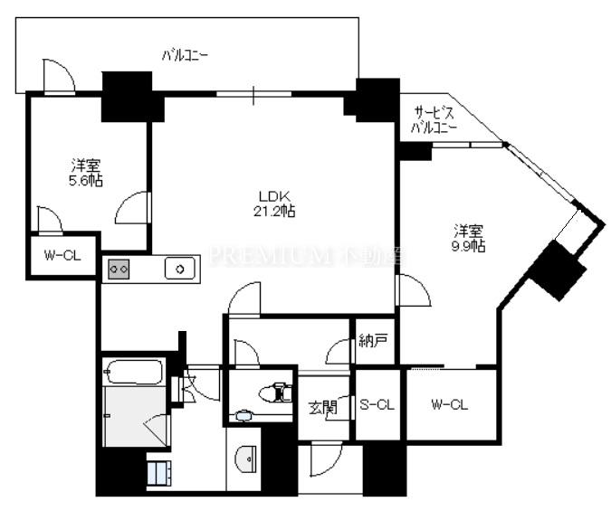 間取り 2LDK(洋9.9 洋5.6 LDK21.2)