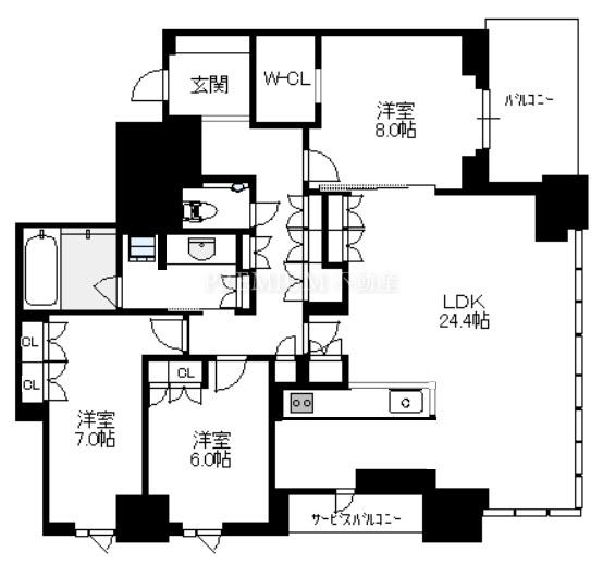 間取り 3LDK(洋8.1 洋7.0 洋6.0 LDK24.4)