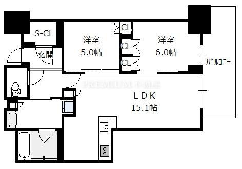 間取り 2LDK(洋6.0 洋5.0 LDK15.1)