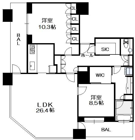 間取り 2LDK(洋10.3 洋8.5 LDK26.4 )
