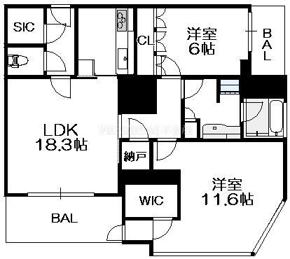 間取り 2SLDK(洋11.6 洋6.0 S0.7 LDK18.1)