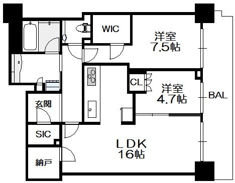 間取り 2SLDK(洋7.5 洋4.7 S1.8 LDK16.0)