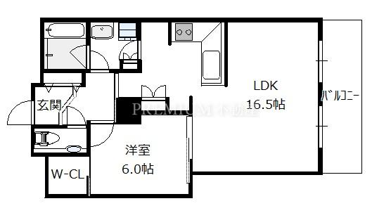 間取り 1LDK(洋6.0 LDK16.5)