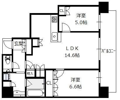 間取り 2LDK(洋6.6 洋5.0 LDK14.6)
