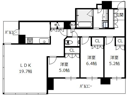 間取り 3LDK(洋6.4 洋5.2 洋5.0 LDK19.7)