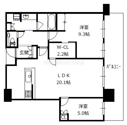 間取り 2LDK(洋10.0 洋5.2 LDK20.8)