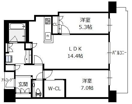 間取り 2LDK(洋7.0 洋5.3 LDK14.4)