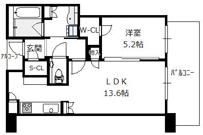 間取り 1LDK(洋5.2 LDK13.5)