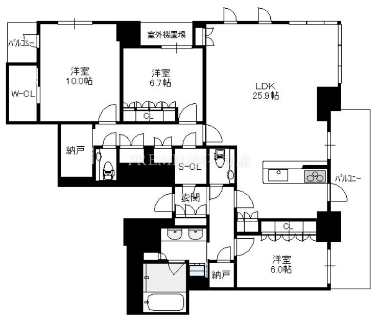 間取り 3SLDK(洋10.0 和洋6.7 洋6.0 S1.9 S1.8 LDK25.9)