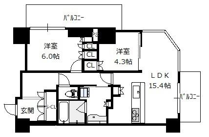 間取り 2LDK(洋6.0 洋4.3 LDK15.4)