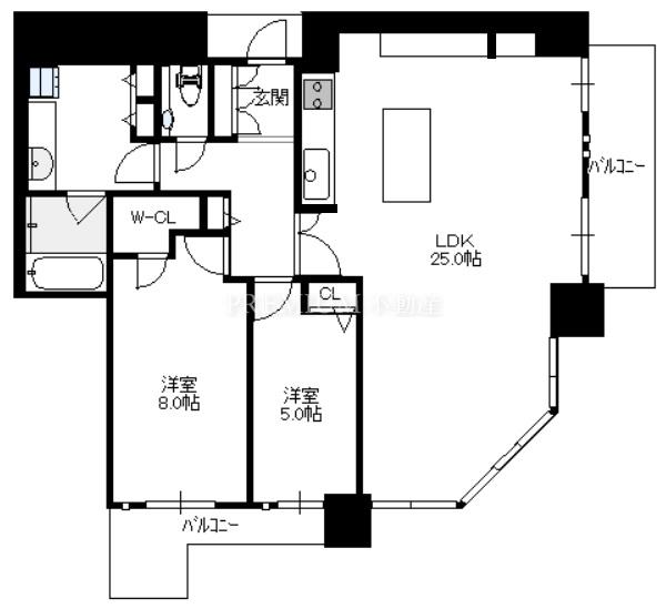 間取り 2LDK(洋8.0 洋5.0 LDK25.0)