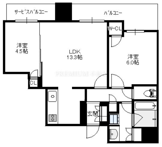 間取り 2LDK(洋6.0 洋4.5 LDK13.3)