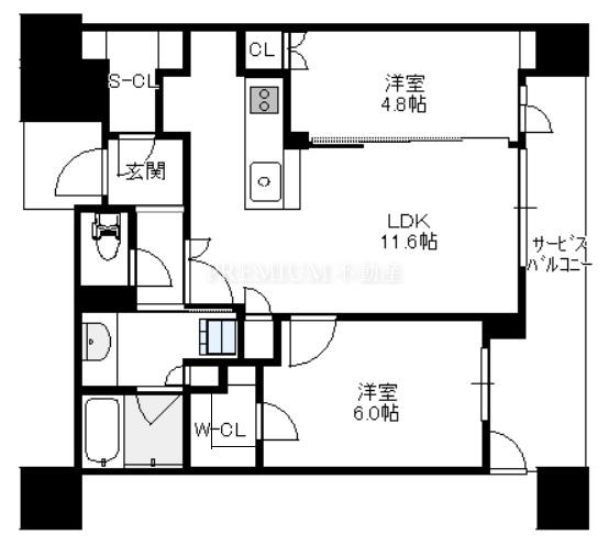 間取り 2LDK(洋6.0 洋4.8 LDK11.8)