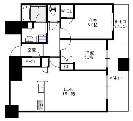 間取り 2LDK(洋6.0 洋5.0 LDK15.1)